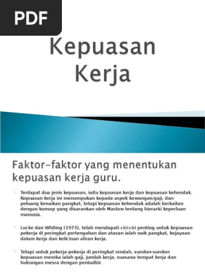 Apa yang dimaksud dengan kepuasan kerja. Interaksi Kompetensi Kepribadian Guru dengan Kepuasan Kerja Munaddhomah. Hasil kajian menunjukkan bahawa kepuasan kerja guru adalah pada tahap sederhana.